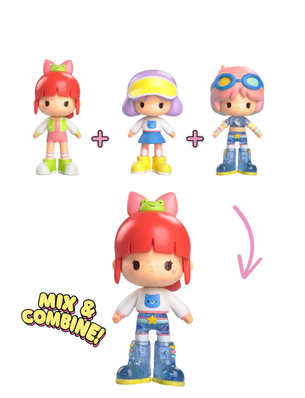 Muñecas estilo kawaii con piezas intercambiables para crear conjuntos a la moda.