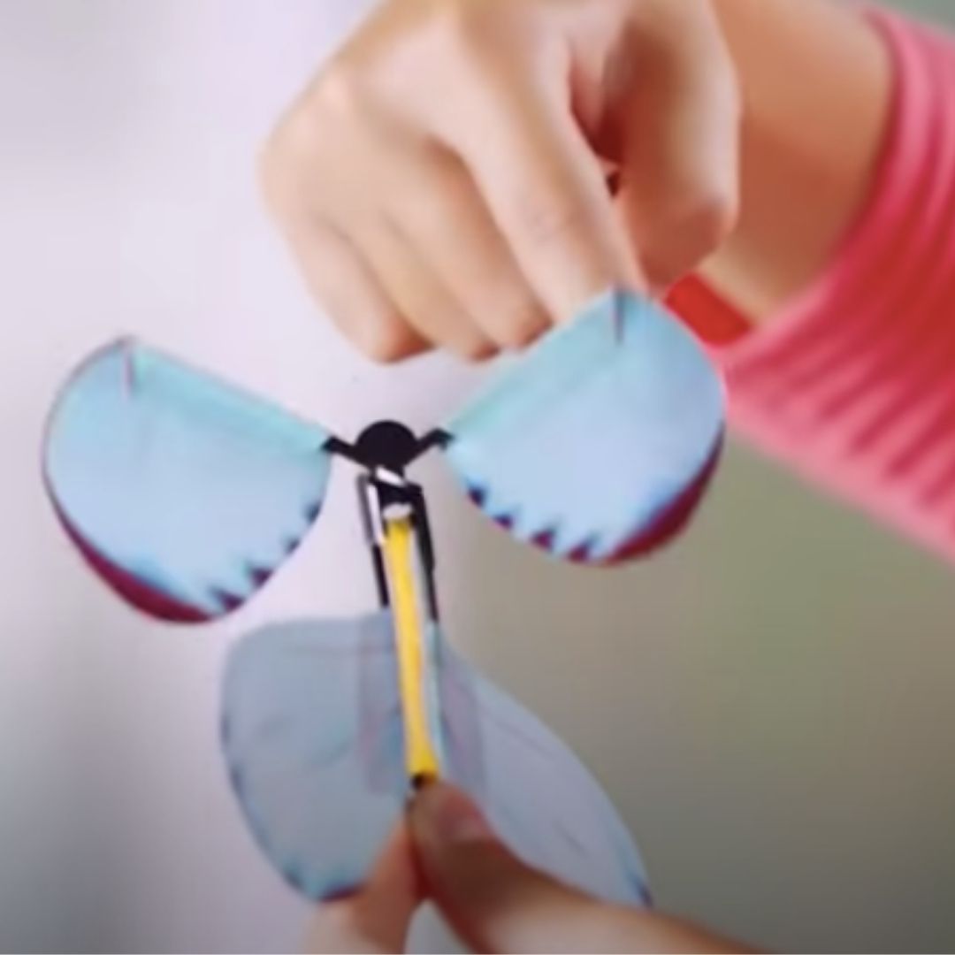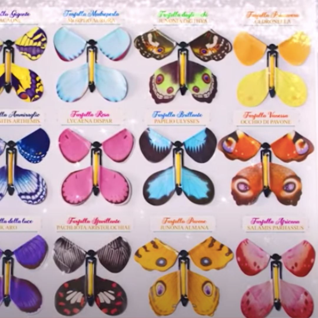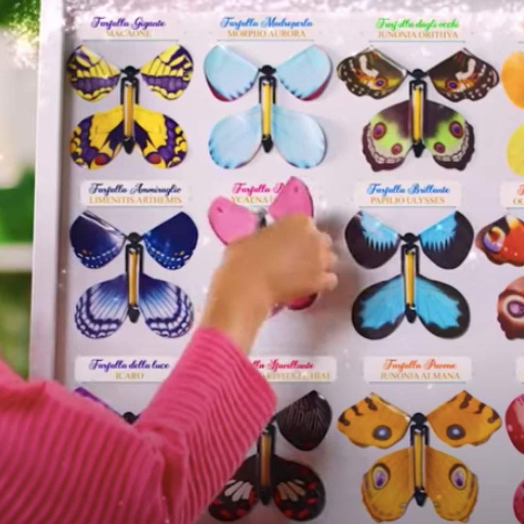 Una bellísima colección de mariposas ¡qué vuelan de verdad! Sujeta el extremo inferior, da vueltas a las alas y déjalas volar. Encuentra las que brillan en la oscuridad.